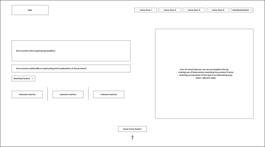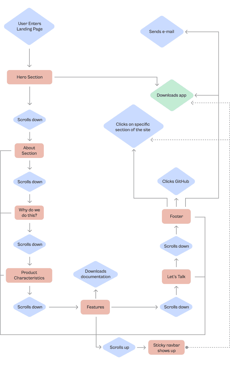 4. Outcome of the project - landing page user flow, wireframes