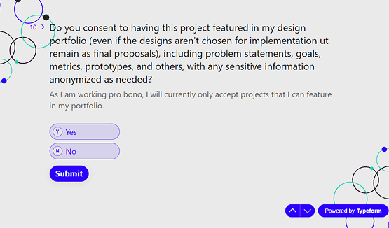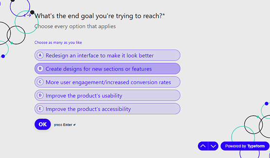 For this initial research phase, I decided to build a really simple inquiry that would lead me through the main objectives and painpoints of the client. I also wanted to check if I was the right match to embrace this project. I’ve chosen Typeform as the tool for it.